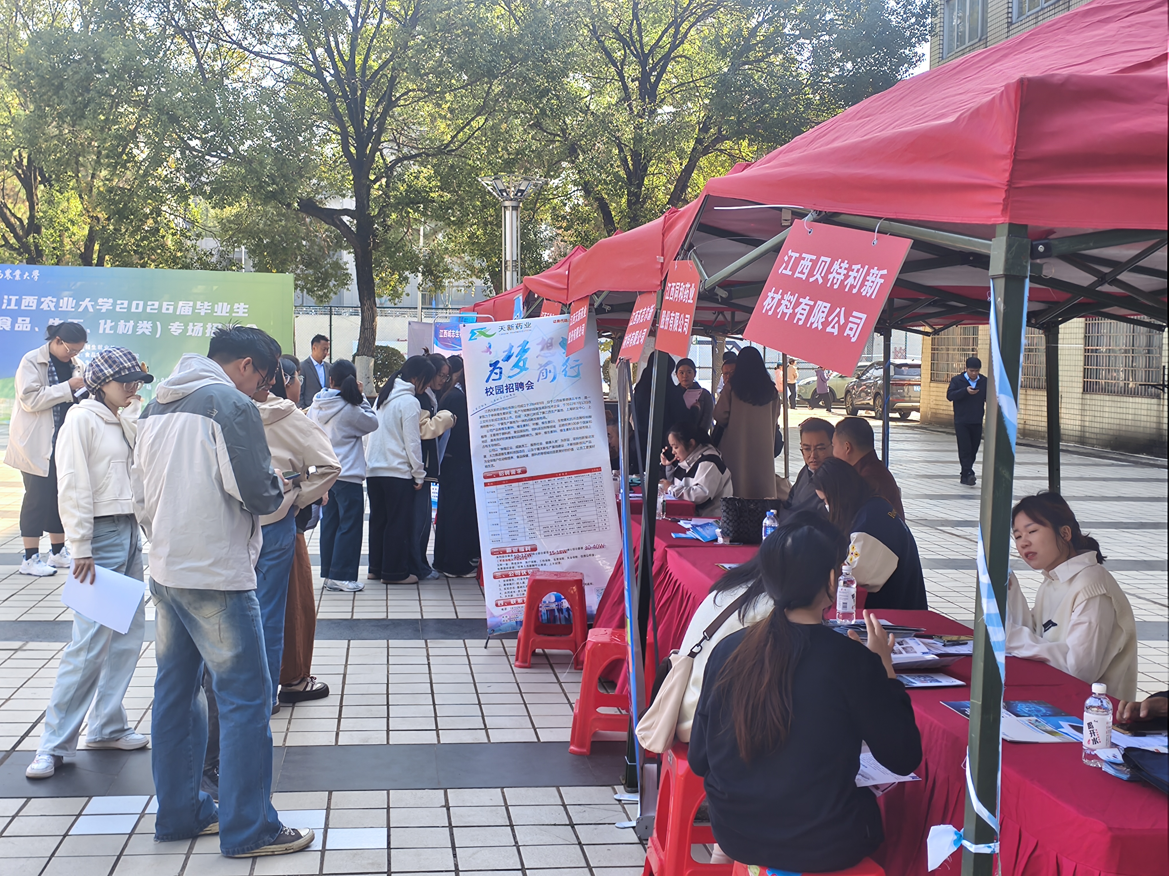 11月14日上午,bevictor伟德国际1946官网2026届毕业生(食品、生物、化材类)专场招聘会在大学生活动中心文化广场举行,双胞胎集团等25家重点用人单位参加,提供135个岗位,需求毕业生人数1000余人 。