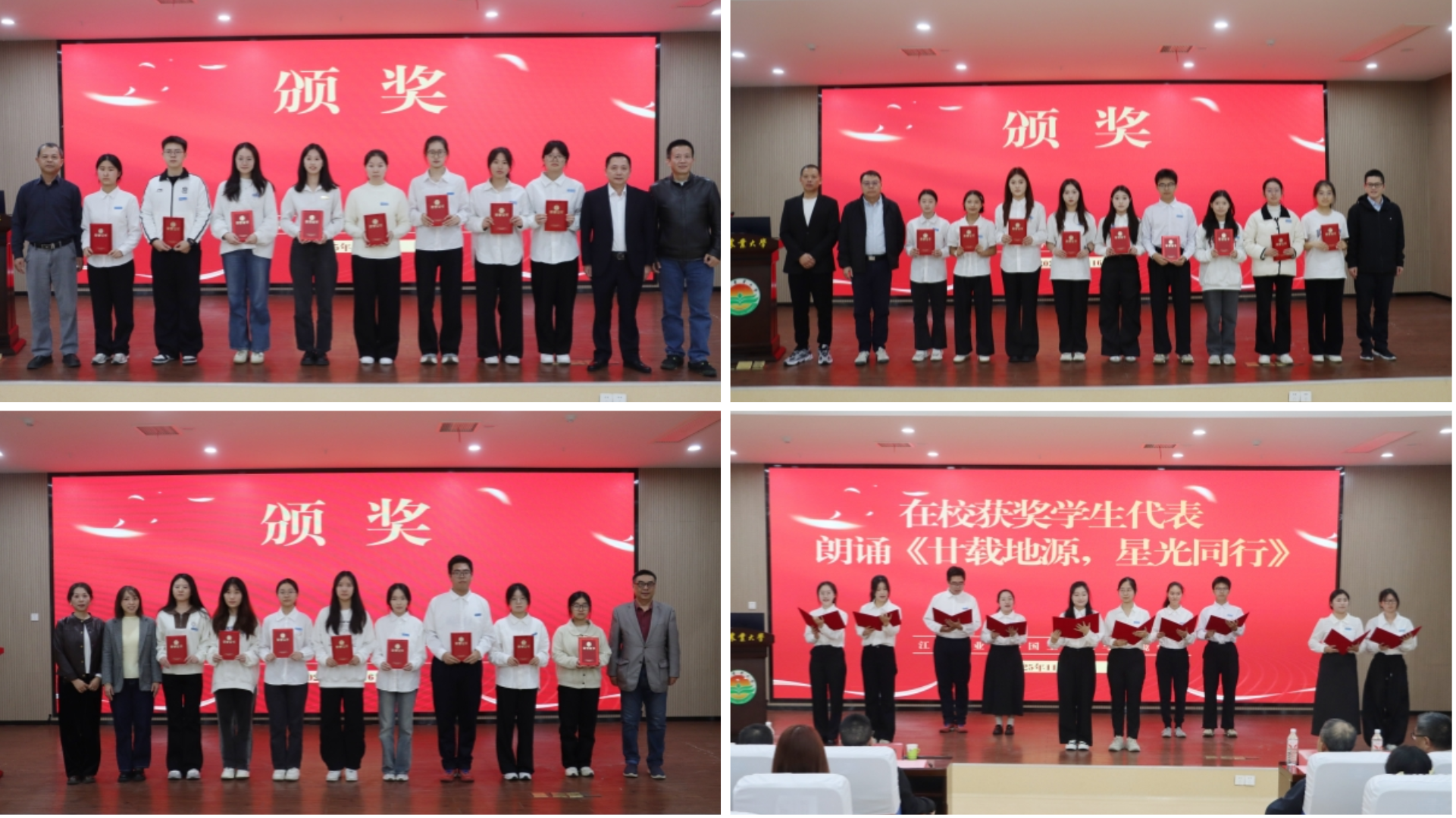 活动中,播放了历届获奖学生代表寄语的视频《地源力量》,2025年获奖研究生代表罗洋及大一新生代表李山杉分别发言,历届在校获奖学生表演了朗诵《廿载地源,星光同行》。江西地源公司董事长甘志强在讲话中回顾了企业与学校的合作渊源,并勉励学子勤奋学习、回馈社会。