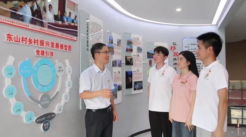 为进一步强化政治引领、思想教育和文化浸润,7月12日,团队联合东山村和四所高校同上一堂“大思政课”,全国人大代表张海荣、党的二十大代表赵小梅、“中国好人”邓小金作专题报告,并与在座师生开展座谈交流。在村史馆,东山村党支部副书记魏明伟带领全体队员重温入党誓词,夯实信仰初心。团队寻访老党员王月军,聆听他长期奋斗在基层一线的心路历程,感悟了基层党组织的战斗堡垒作用。博士宣讲团成员黄以胜,实践队员温文辉、祝小妹、张宇晴分别围绕党的二十大精神、乡村振兴、产业振兴面向青年师生、村民和少年儿童开展宣讲,共话中国式现代化之路。
