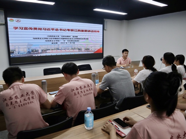 青年强则国强,青年兴则国兴,青年是实现乡村振兴的中坚力量。在数字经济产业园,队员温文辉以“学习宣传贯彻习近平总书记考察江西重要讲话精神”为题向正在驻地开展社会实践活动的高校师生开展宣讲,引领大家系统回顾了习近平总书记的江西之行,聚焦东山村的华丽蜕变、全国先进工作者谭翊泉的感人事迹和当代青年应有的挺膺担当,激励大家要坚持学思用贯通、知信行统一,以实际行动汇聚起全面推进乡村振兴的青春合力。