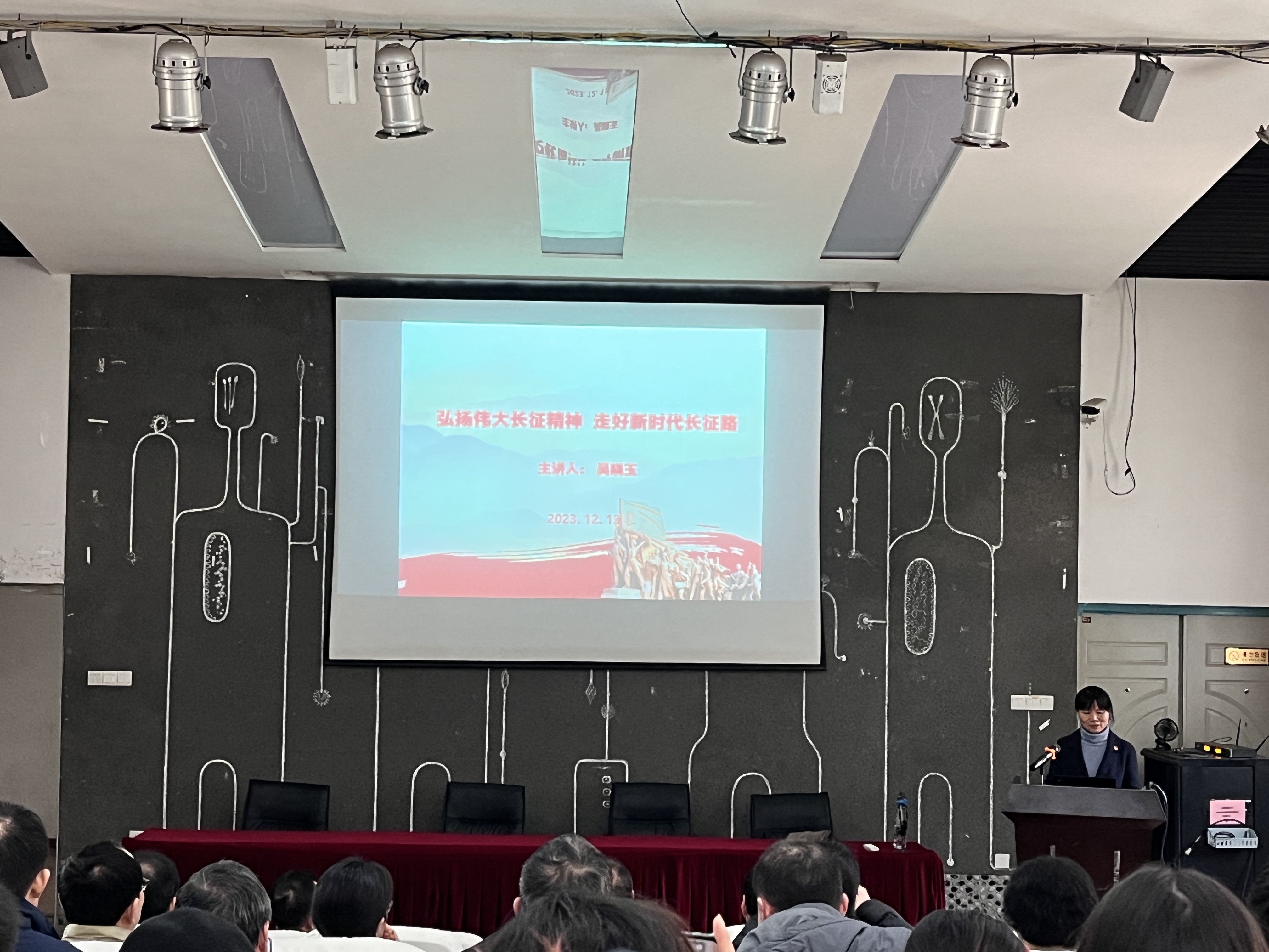吴晓玉以《长征组歌》的创作背景为切入点,深入阐释了长征的背景、长征的历史、长征精神的内涵等内容,并结合学院实际阐述了走好新时代长征路具体做法。她强调,作为新时代的师生党员,要加强革命理想教育,坚持独立自主的立场,汲取不畏艰险的文化精髓,践行群众路线,创造美好生活,走好建设农业强国的新时代长征路。