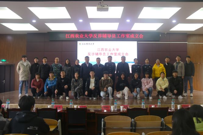 蔡海生在讲话中表示要以习近平总书记来江西考察时提出的“走在前、勇争先、善作为”重要讲话精神为指引,以维护好宜学宜教宜言的美丽江农校园建设为目标,开展校园反诈工作和反诈辅导员工作室建设,并提出四点工作意见:一是坚持“以心连心”做到同心协力,强化反诈合力,校园反诈工作需要公安局、校保卫处、学生团学等部门相互沟通,建立相互衔接、相互补充、相互促进的机制,反诈辅导员工作室要深入同学,能形成系统化、层次化、网格化工作格局;二是坚持“以广治广”,做好全员参与,强化群防群治,辅导员工作室要扎根基层,建立起专业的队伍,采取多元化宣传形式,扩大宣传的覆盖面,将“识诈反诈”知识传递到每一个角落,做到人人知晓,人人参与;三是坚持“以准治准”,做到精准预防,强化工作成效,辅导员工作室要在深度和效度上下功夫,针对不同类型的网络诈骗,采用视频、漫画等师生易理解接受的方式宣传,同时借助大数据分析筛选出易受诈骗群体,精准推送相关反诈信息,提高宣传效果;四是坚持“以快治快”,做到分秒必争,强化共治共管,反诈辅导员工作室要通过各种途径及时了解、更新诈骗手段内容,培养学生志愿者反诈先锋,提升反诈骗工作反应速度,借助公安部门的支持,在诈骗预警——诈骗过程评价——诈骗事后处理等方面,确保及时发现、处置和打击犯罪行为,形成全校性反诈防护网络。
