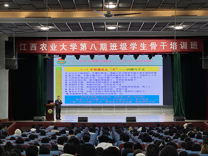 12月4日,学校第八期班级学生骨干培训班在校大礼堂举行开班仪式,校党委副书记蔡海生出席开班仪式并做主题报告。