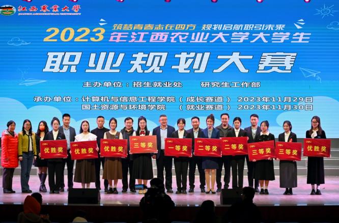 就业赛道校赛决赛得到了正大集团的赞助支持,现场邀请了江西正大负责人、南昌海康威视数字技术有限公司负责人、江西联创电子有限公司负责人担任企业评委,赛道设主题陈述、综合面试、天降offer(录用意向)环节,经过激烈角逐,就业赛道园林与艺术学院博士张成获一等奖;外国语学院全思梦、农学院刘家蓓获二等奖;国土资源与环境学院许建繁、经济管理学院研究生曾宇晞、生物科学与工程学院赖萍获三等奖;经济管理学院研究生李深权、马克思主义学院研究生胡益瑶、计算机与信息工程学院研究生施俊林、农学院梅黎青获优胜奖,国土资源与环境学院、农学院获优秀组织奖,赛道还评选了优秀指导老师若干。