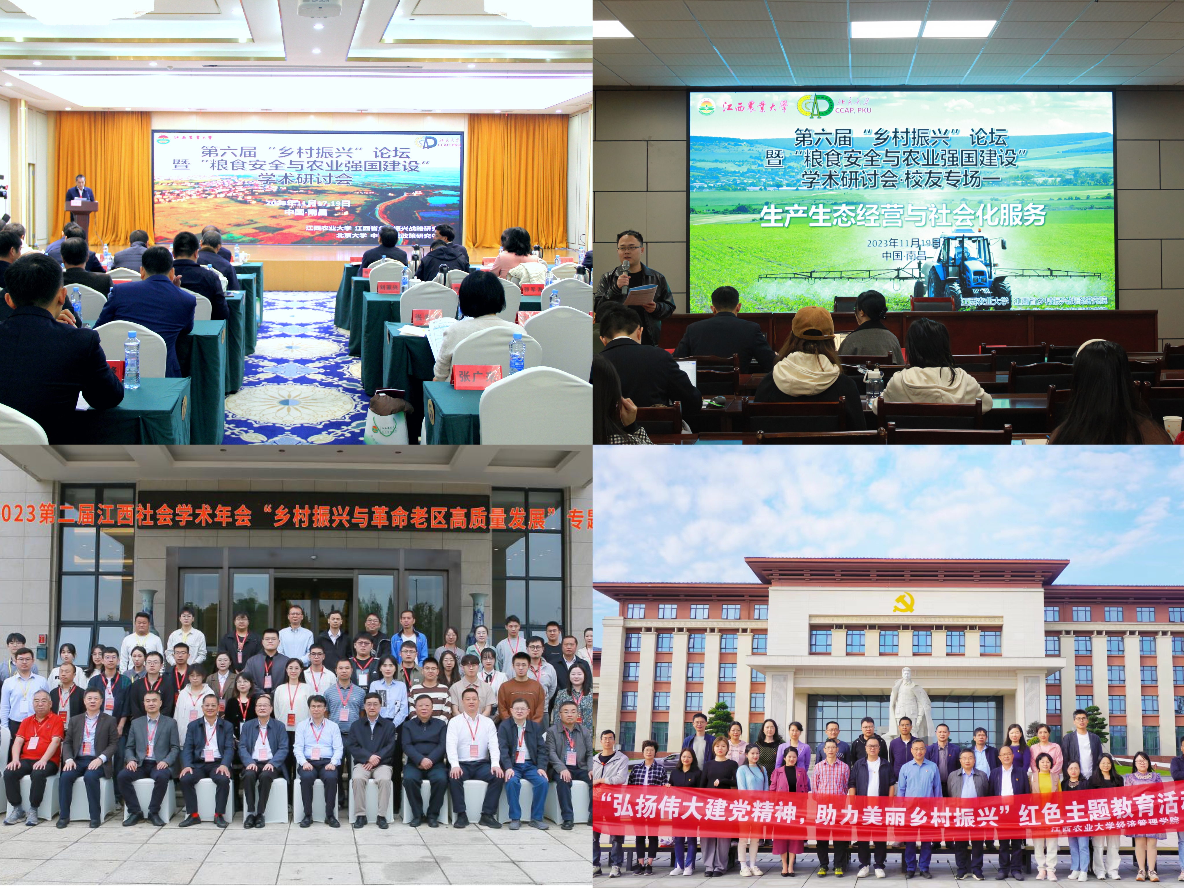 悟透精髓实践学,推动理论学习走深走实。为促进学习习近平总书记考察江西重要讲话精神往深里走、往实里走。10月25日,由江西省农村发展研究中心、江西省乡村振兴战略研究院等单位承办的2023(第二届)江西社会科学学术年会“乡村振兴与革命老区高质量发展”专题分会在上饶市横峰县召开,本次会议重点围绕乡村振兴与革命老区高质量发展问题开展交流研讨,共同为我省乡村振兴与绿色高质量发展献计献策,助推我省建设农业强省,努力谱写江西现代化建设的新篇章。10月28至29日,经管学院党委组织教职工党员前往江西弋阳方志敏干部学院开展“弘扬伟大建党精神,助力美丽乡村振兴”的红色主题教育活动。11月18日-19日,由经管学院组织承办的第六届“乡村振兴”论坛暨“粮食安全与农业强国建设”学术研讨会成功召开。研讨会以“粮食安全与农业强国建设”为主题,来自北京大学、中国人民大学、中国社会科学院、上海财经大学等全国50多所高等院校、科研院所及企事业单位的特邀专家、学子共同研讨,进一步将粮食安全领域的研究推上新台阶,为保障国家粮食安全,打造更高水平的江南粮仓献计献策,为全面推进乡村振兴提供理论支撑和智力支持,充分将习近平总书记提出的“加强农业农村现代化步伐、加快建设农业强国”的殷殷嘱托落到实处。