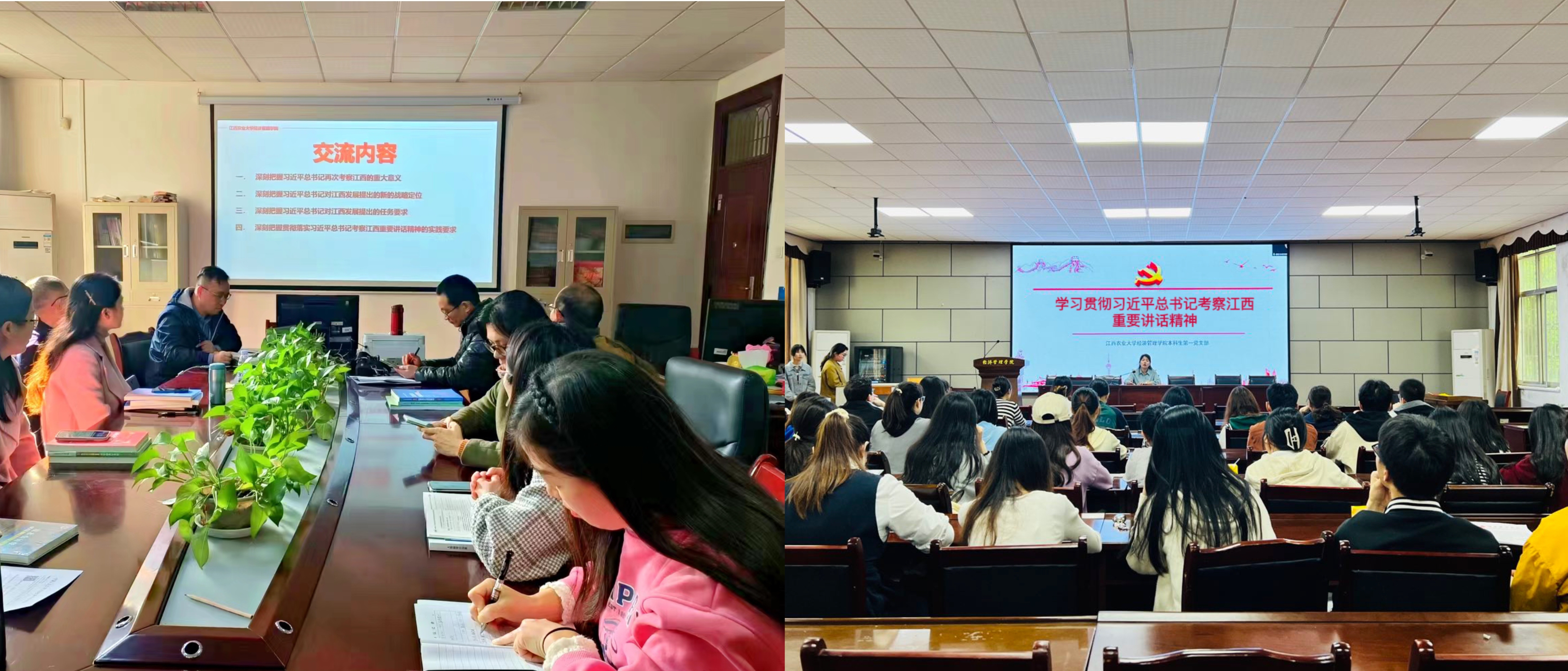 学院全面系统学,营造良好学习氛围。学院党委第一时间在党委会、教职工大会上,传达学习习近平总书记考察江西重要讲话精神。同时,学院党委组织召开专题理论学习中心组(扩大)学习会,会议集体学习了习近平总书记考察江西重要讲话精神、习近平总书记主持召开进一步推动长江经济带高质量发展座谈会重要讲话精神,传达学习了江西省领导干部会议精神、学校党委理论学习中心组(扩大)学习会会议精神,促进了党员干部学有所思、学有所获、学有所用,营造了良好学习氛围。