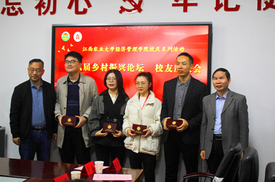 11月17日-19日,学院联合学江西省乡村振兴战略研究院、北京大学中国农业政策研究中心举办第六届乡村振兴论坛暨“粮食安全与农业强国建设”学术研讨会,本次论坛专设了经管学院校友专场报告会和校友座谈会。报告会上校友们分享交流、共享学术盛宴;座谈会上大家亲切交谈,党委书记郭军海亲切致辞,既对校友们为母校争光表达了感谢,也希望校友们能经常回母校看看,一如既往地关注和支持母校的发展。会后,学院领导为参会校友颁发纪念品并合影留念。