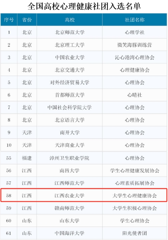 近日,共青团中央维护青少年权益部、中华全国学联秘书处公布了入选全国高校心理健康社团的社团名单。伟德大学生心理健康协会脱颖而出,成功入选。
