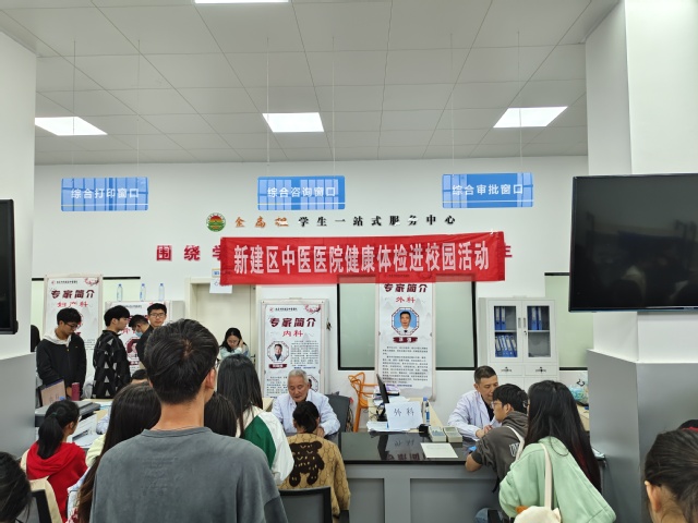 近日,为持续推动健康校园建设,学工处与校医院联合南昌市新建区中医医院在“金扁担”一站式服务中心开展“健康进校园”学生健康义诊活动,吸引了约800余名学生参与。
