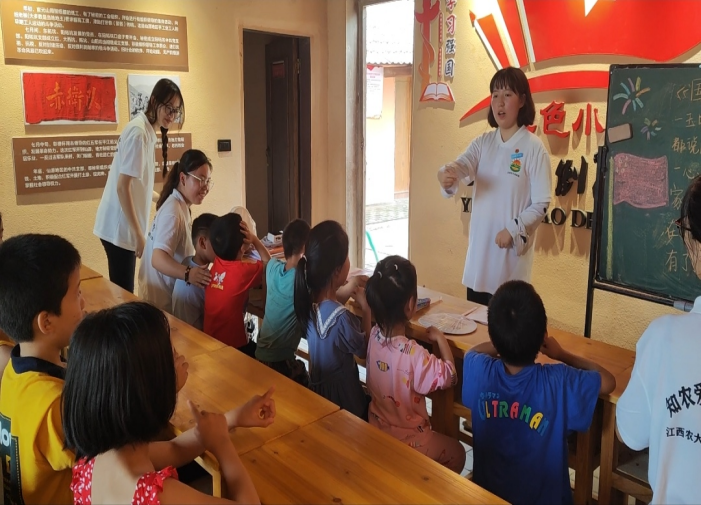 守护花蕾成长,让爱不再孤单,在万载县仙源村仙源乡,“红领”实践营队的队员们入驻“童心港湾”,开设了书法、音乐、绘画、阅读、手工、数学等丰富多彩的公益课堂。集体活动、单独教学,无微不至的关爱熏风解愠,孩子们也从一开始的拘谨害羞转变为与实践队员们主动交流。