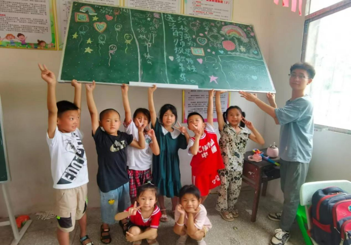 “老师我以后要去县城”,“我未来想去南极看企鹅”……九江市船滩镇的留守儿童们用稚嫩的童声诉说着对大山外面世界的向往,在这里,“盛夏新征程,支教筑梦行”实践营队展开了三周的支教活动。从爱国教育、安全教育到品格教育,服务团成员鼓励孩子们追求远大目标,成为有责任有担当的新时代好青年。暑期课堂教学、日常陪护活动,实践队员们将爱传递给孩子们,让爱不再孤独,让每一朵花蕾都尽情绽放。