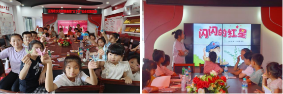 “小老师”寓教于乐,结合小朋友的兴趣,开展“红心永向党”绘画活动,吸引了40余名小朋友,共绘制了200余幅红色画作。小朋友以《我心中的祖国》、《最难忘的革命英雄》、《家乡的变化》等为题,细细勾勒、认真描绘,将心中最美好、最纯真的心意和创意倾注于手中画笔,通过小朋友的画笔及视角,绘制出别样的艺术传承和党心传递的爱国主义精神画卷,让青少年更好感悟党的峥嵘岁月和光辉历程,引导青少年“从小学党史,永远跟党走”,让红色的种子在他们心中生根发芽。