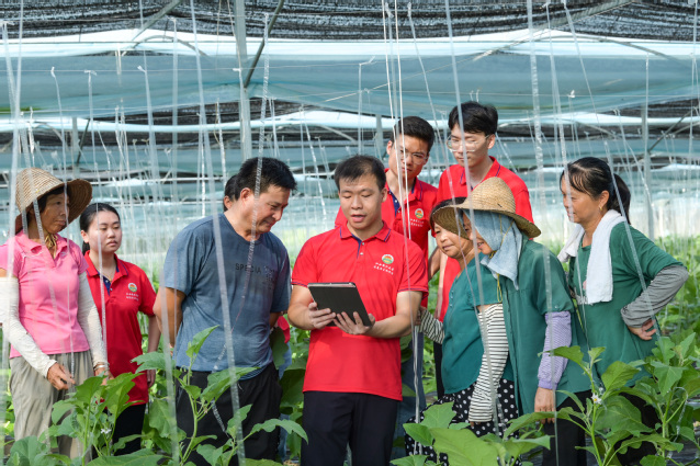 田间地头话政策。产业振兴是乡村振兴的重中之重。沂江乡东湖村作为市级乡村振兴示范村,其大棚蔬菜基地远近闻名。为深入了解该村产业发展情况,营队走进蔬菜大棚,听取基地负责人介绍产业规模、种植结构、产品销路等情况。队员朱伟在田间地头为大家讲解党的二十大报告关于农业农村工作的重要部署、2023年中央一号文件等精神,鼓励大家稳住面积、主攻单产、力争多产,为抓紧抓好粮食和重要农产品稳产保供贡献力量,把中国人的饭碗牢牢端在自己手里。