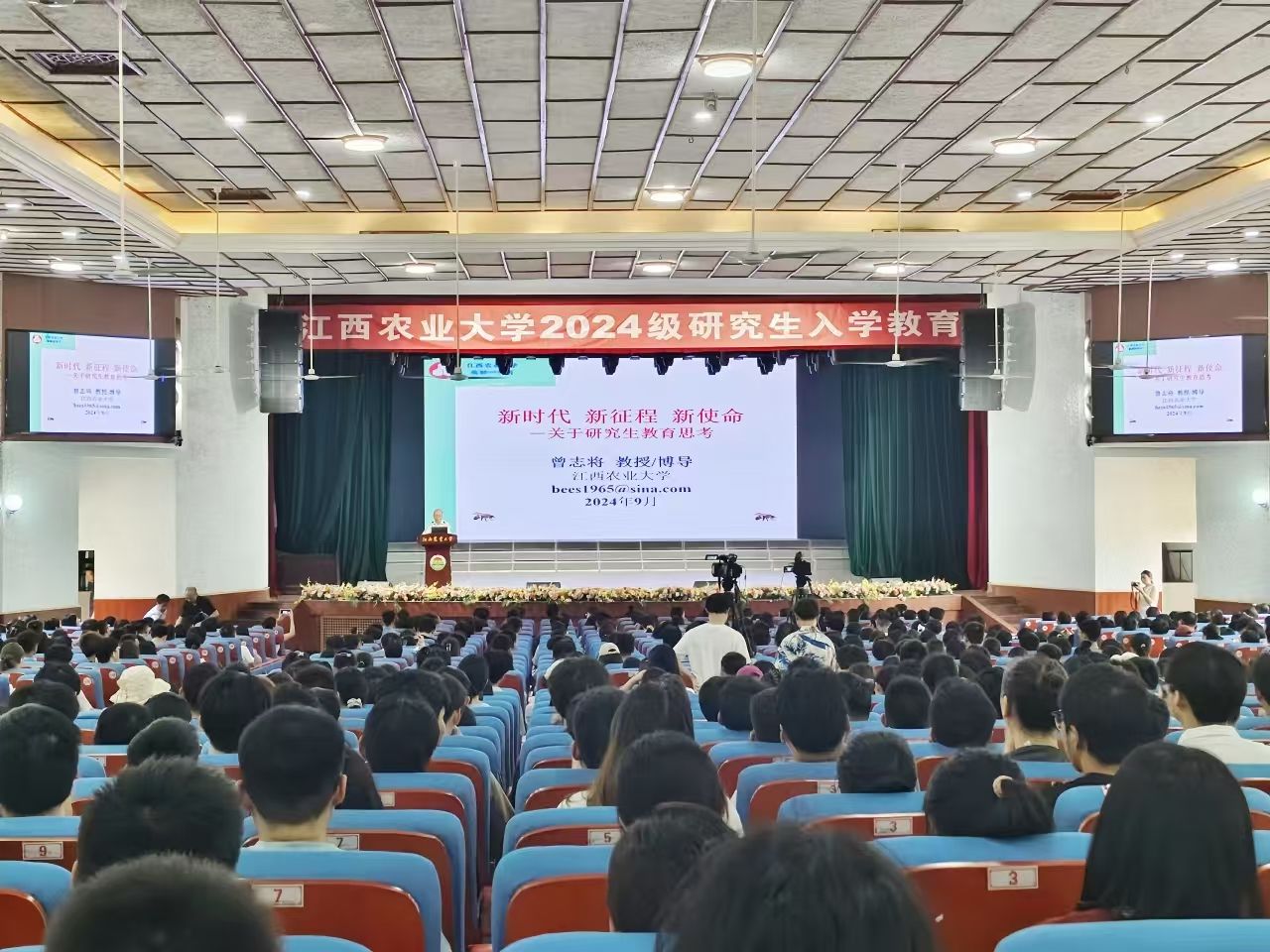曾志将教授以《新时代 新征程 新使命--关于研究生教育思考》为题给2024级全体研究生授课。曾志将深情回顾了自己的读研经历和研究生教育工作经历,分享了“为什么读研究生”“如何读研究生”“怎样成为一名合格的研究生”的宝贵经验,同时系统阐述了国家发展高质量研究生教育的战略意义和伟德研究生教育的历史底蕴,勉励2024级研究生与祖国同行,牢记“强农兴农”使命担当,艰苦奋斗、脚踏实地,勇敢迎接挑战练就坚硬品格,以锐意创新姿态彰显新时代“江农人”的历史使命和责任担当。