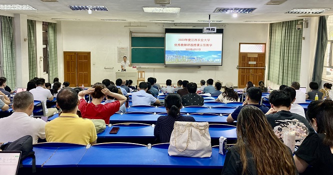 6月27日,伟德2023年度优秀教师评选示范教学活动在名达楼举行。本次授课示范教学共有42名教师参加,评委组由4位校外专家、10位校内专家组成。副校长贺浩华出席活动,新进教师到场进行教学观摩。