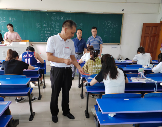 校领导和教务处高度重视本次考试工作,外国语学院也切实做好了相关的组织和过程管理工作。考试实施中,学校各部门通力合作,副校长贺浩华,在教务处、外国语学院负责人的陪同下,来到现场巡查考试情况。