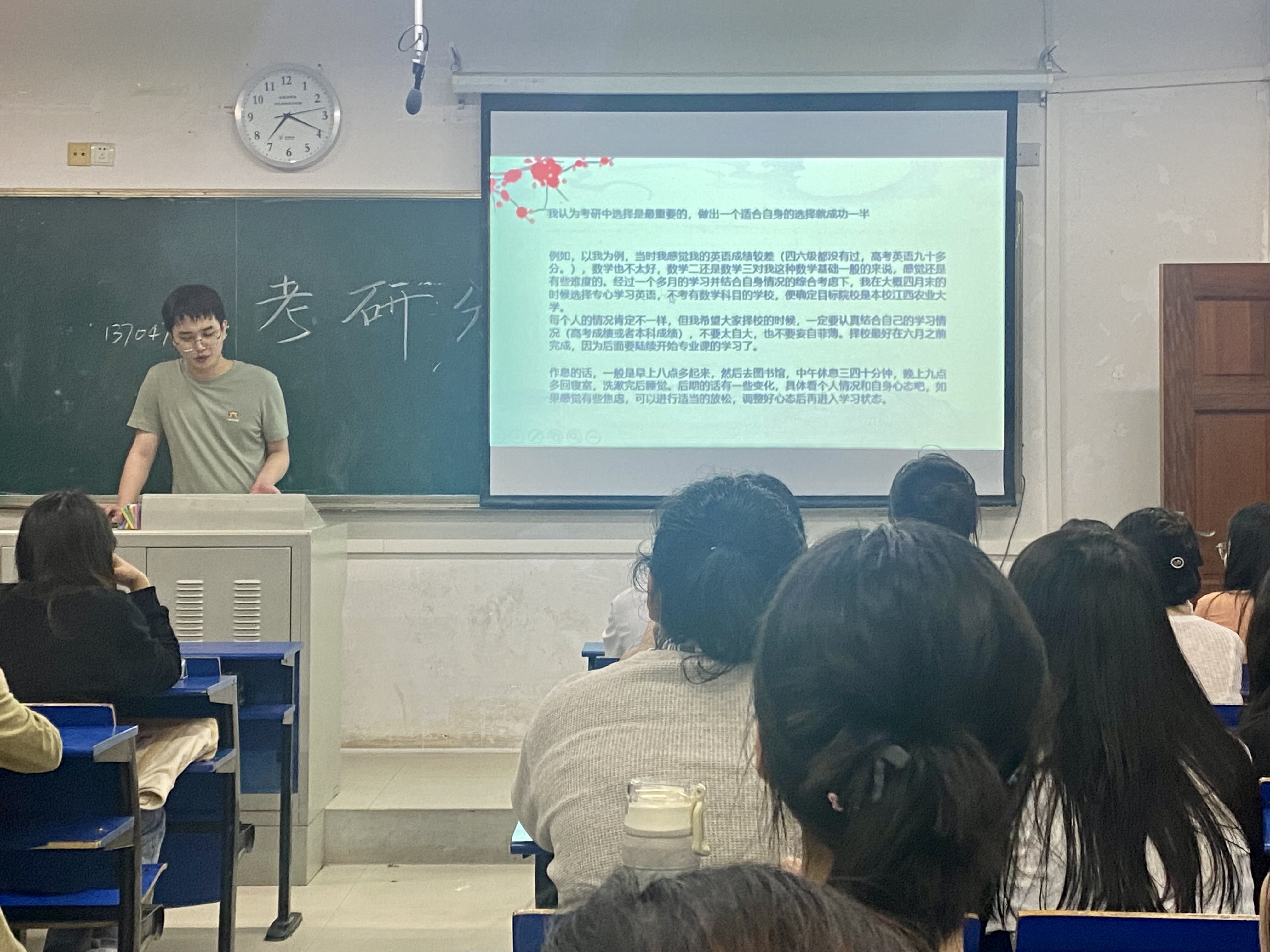 学院组建优秀毕业生代表宣讲团开展“思源领航”毕业生朋辈宣讲活动,在各个专业、班团中分专题分享他们成功的学习经验、求职经验和考研经验。通过“成果共享”“经验分享”,搭建学生经验交流分享的良好平台,激励学弟学妹树立“研途”信心,明确就业方向,汲取奋发力量。