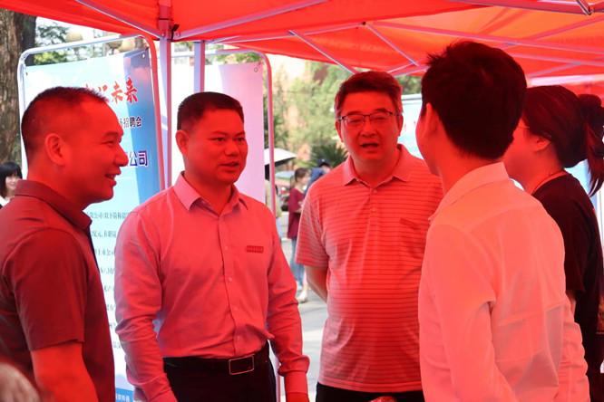 推介会后,蔡海生等人来到新余高新区专场招聘会现场,详细了解用人单位发展状况、岗位需求,鼓励毕业生们把握机会,积极就业,早日找到自己心仪的工作。毕业生们手持精心准备的求职简历,就职业发展、薪资待遇、培训提高等问题与用人单位展开面对面交流。