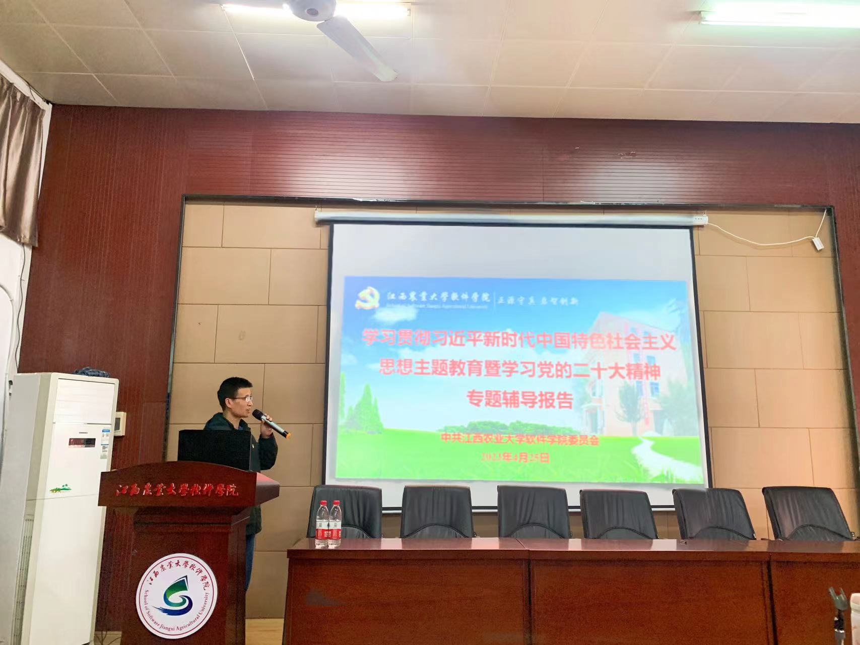 4月25日下午,软件学院在科技报告厅举办学习贯彻习近平新时代中国特色社会主义思想主题教育暨党的二十大精神专题辅导报告会。学院全体师生党员参加会议。