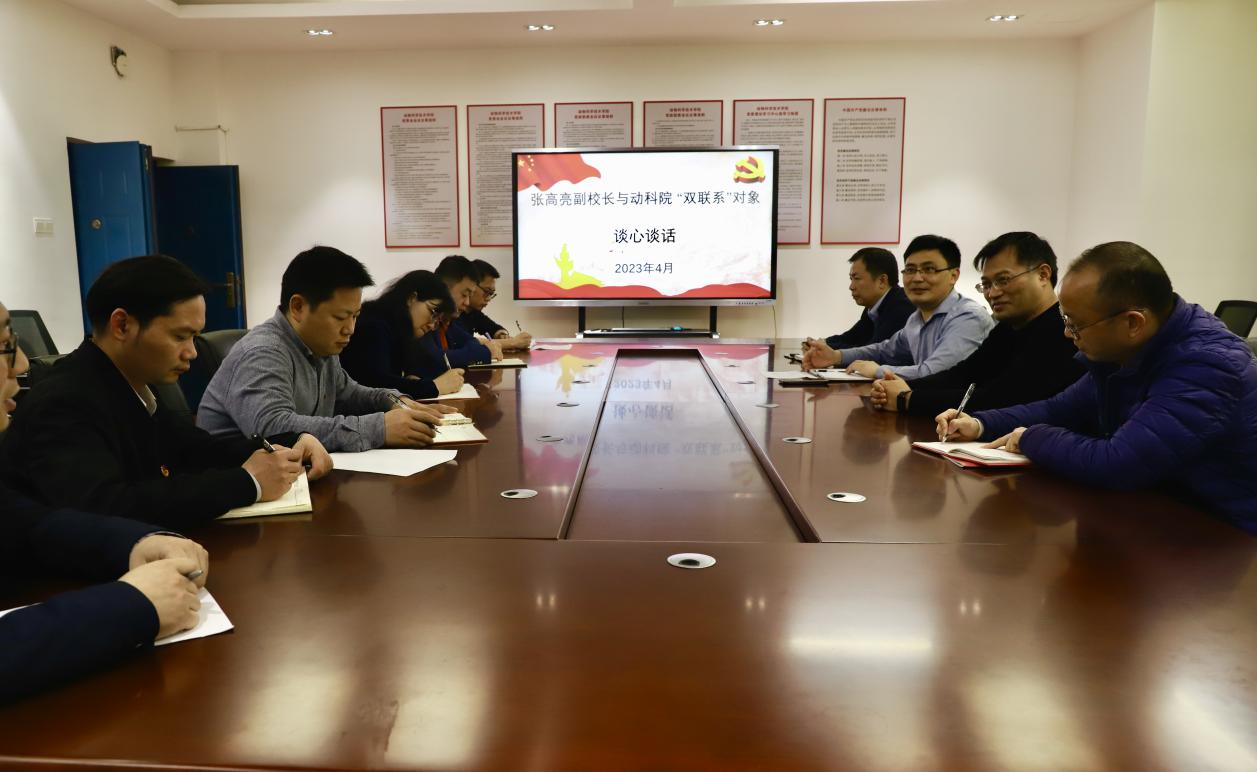 为学习宣传贯彻党的二十大精神,4月12日,张高亮副校长到动物科学技术学院开展“双联系”活动,并围绕学院近期重点工作进行调研,与动物医学教工第一党支部书记和联系的教师党员进行谈心谈话,听取他们在工作和生活中的困难,对学校改革发展的意见和建议。学院领导班子成员陪同。