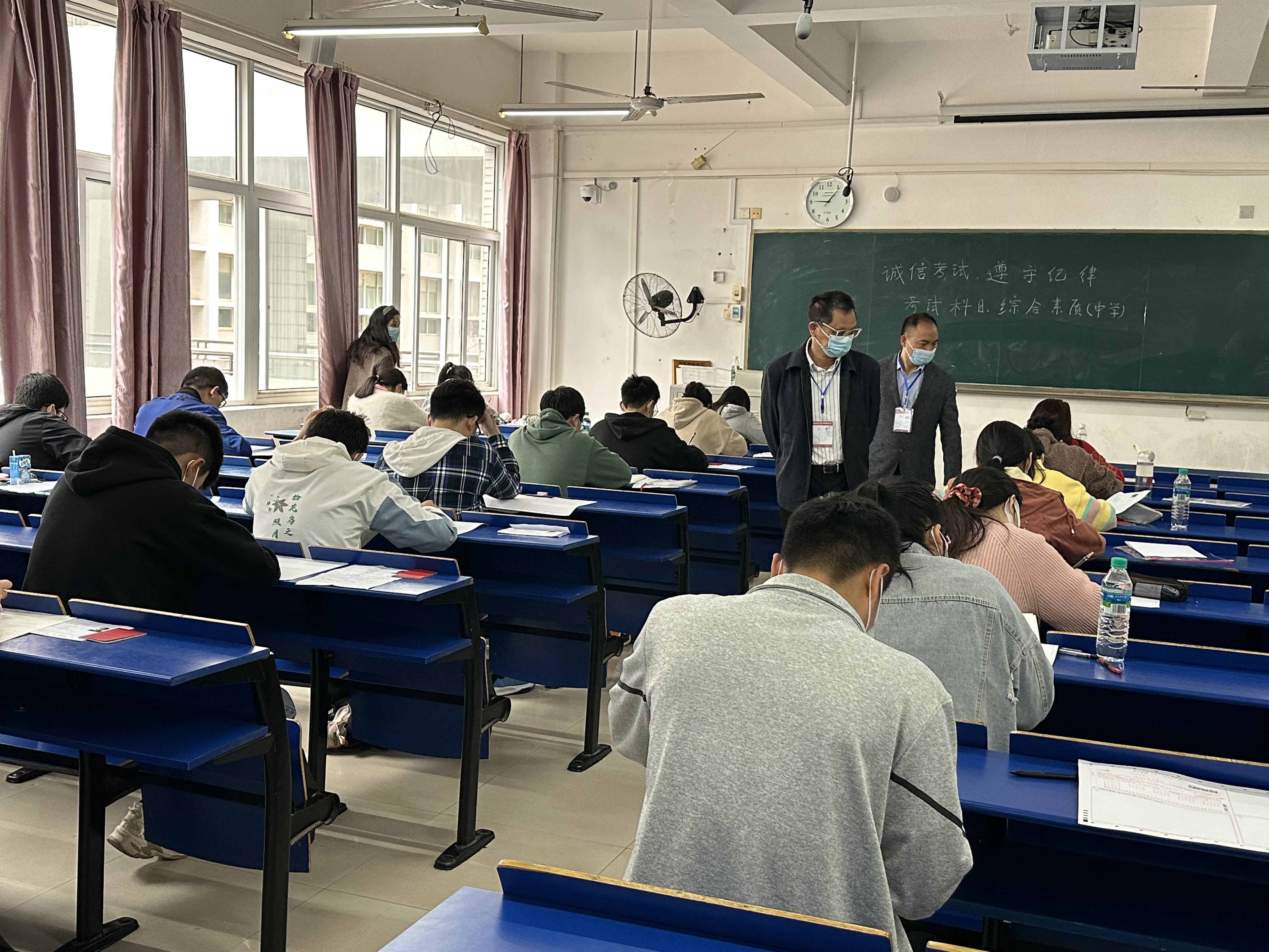 在保卫处和医院等部门的支持下,各工作小组通力合作、密切配合,各考场监考教师严格履行监考职责,学生严格遵守考场规则,从证件检查、试卷领取、考生入场到考试结束的各个环节都做到了严谨、规范、高效,圆满完成了本次考试工作。