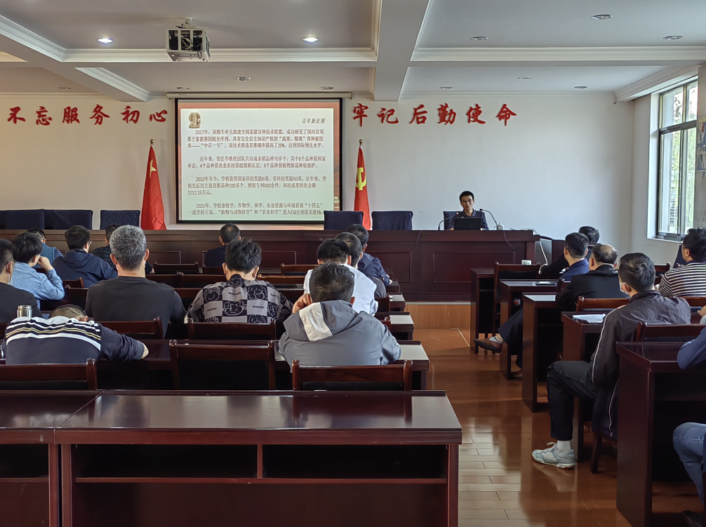 校党委委员、宣传部长贺一松同志,以“学习贯彻党的二十大精神推进教育高质量发展”为主题作了专题宣讲,重点围绕新时代我国教育的发展成就、新征程上教育事业发展的战略定位、新征程上教育事业发展的战略目标、新征程上教育事业发展的实现路径四个方面进行阐述,指出党的二十大报告第一次把三大战略摆放在一起,并突出强调“教育、科技、人才是全面建设社会主义现代化国家的基础性、战略性支撑”;在今后工作当中,要把教育、科技、人才三者有机结合起来,把科研工作做到顶天立地,坚持为党育人、为国育才,办好人民满意教育;后勤作为为学校工作的重要组成部分,全体后勤人要深知重任,要始终保持永不懈怠的精神状态和一往无前的奋斗姿态,直面学校发展面临的新形势、新挑战、新机遇,攻坚克难,开拓奋进。