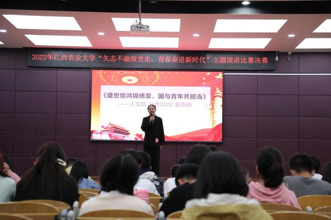 为深入学习贯彻党的二十大精神,团结引领广大团员青年坚定不移听党话,矢志不渝跟党走,充分展现新时代江农学子朝气蓬勃、锐意进取、奋发向上的精神风貌,11月3日晚,由校团委主办、大学生501演讲协会承办的“矢志不渝跟党走,青春奋进新时代”主题演讲比赛决赛在大学生活动中心501落下帷幕,校宣传部、统战部负责人与现场团员青年共计300余人一同观看了比赛。