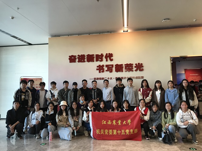 为迎接党的二十大胜利召开,大力营造团结奋进、爱党爱国的浓厚氛围,1011日下午,机关十五支部开展支部联系班级活动,组织土管2001班学生前往江西省图书馆参观《奋进新时代 书写新荣光——喜迎党的二十大 苏区振兴十周年成就展》。