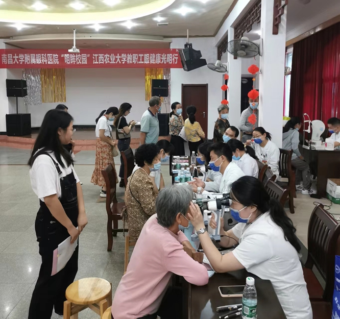 活动中,医务人员专业认真地免费为教职工进行视力检查、电脑验光、裂隙灯检查 、眼表检查、眼底检查,并耐心细致地回答现场人员提出的各种问题,积极开展眼健康知识宣讲,发放各类眼科知识宣传手册。