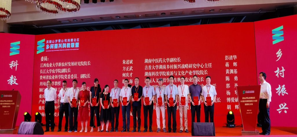 “两山一区”乡村振兴科教联盟成立大会成前,举行了联盟发布会。会议发布了武陵山、罗霄山和湘赣边区乡村振兴科教联盟章程,2022年联盟发起人单位巩固拓展脱贫攻坚成果与乡村振兴有效衔接“十佳案例”,联盟视觉形象识别系统和歌曲。伟德报送案例《bevictor伟德国际1946官网科技特派团助力脱贫攻坚成果巩固与乡村振兴》入选联盟“十佳”典型案例。