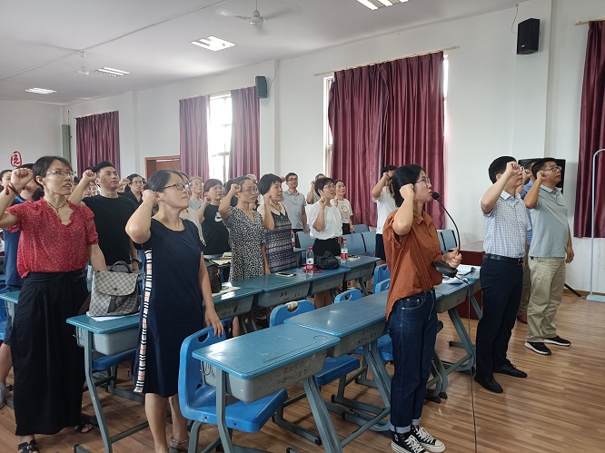 开学之初,附属中学在全体教职员工中开展师德师风宣誓活动,每一位教师签订了《bevictor伟德国际1946官网附属中学教师拒绝乱收费、有偿补课、乱订教辅材料公开承诺书》。9月9日下午,附属中学全体教师学习了《大中小学和幼儿园小微权力清单》《大中小学和幼儿园办学行为负面清单》和《关于严明中秋国庆期间廉洁纪律的通知》等文件。附中党支部书记滕平在学习会上要求,全体教师要深刻认识两个清单的具体内容,逐一对照工作中的具体内容,进一步规范微权利运行,不断提高全校教师树立“清白执教、敬廉律己”的意识,以“一支粉笔,两袖清风,三尺讲台,四季诗意”为人生准则。