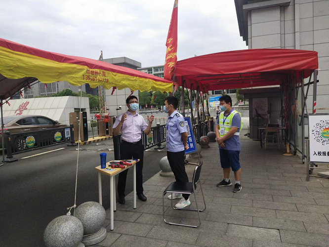 9月8日上午,副校长张高亮在保卫处主要负责人的陪同下,先后前往学校各防疫卡口看望慰问执勤人员,督促指导疫情防控工作。