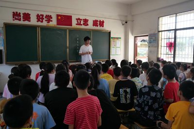 发挥社团优势,甘露支教关爱儿童成长。“童心港湾”营队来到泰和县苑前镇绅溪村,“擦亮星光”营队前往湖南省新邵县塘边完全小学,开展支教活动。支教包括爱国主义教育、红色文化教育和理想规划教育,结合红色资源、传统文化,为孩子们播下爱党爱国的种子;包括课业辅导和拓展、防溺水安全教育、劳动实践和文体活动,结合家访、文艺汇演等,为孩子们成长铺就绚丽底色。活动期间,共青团江西省委副书记罗华看望和慰问了“童心港湾”营队,并与师生座谈交流。