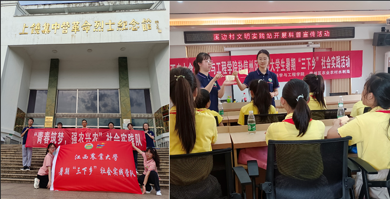 学院高度重视大学生志愿服务意识和社会实践能力的培养,坚持五育并举促进学生全面发展,引导和帮助广大青年学生上好与现实相结合的“大思政课”,在社会课堂中“受教育、长才干、作贡献”。7月初,学院精心组织了“青春筑梦,强农兴农”社会实践队赴上饶市信州区开展大学生志愿者暑期“三下乡”社会实践活动,队员们来到上饶集中营开展了“红色走读”,接受爱国主义教育,传承红色基因。队员们深入食品企业和果蔬种植基地开展特色产业调研,深入农村开展食品营养与安全知识科普宣传,关爱留守儿童,通过开展直观、有趣的体验式小实验,引导孩子们少吃高糖高脂高盐及食品添加剂过多的加工食品,特别是“三无”食品,培养孩子们安全饮食、科学饮食、健康饮食好习惯,得到凤凰网、大江网、上饶电视台等媒体的报道。