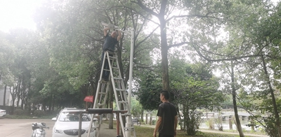 与此同时,在学校生活区金桂苑、翠柳苑的小路边,在兴农大道上,在思镜湖、翠湖边,也活跃着水电工人的身影。他们不分昼夜维修损坏的路灯,保障路灯正常使用,确保师生及居民出行方便。