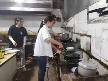 DIY制作炼劳育。热爱劳动是中华民族的优秀传统美德之一。在社会实践活动的最后一天,队员们自己动手,组织“乡”亲“乡”爱晚餐制作活动。队员们买菜、洗菜、切菜、烹饪等,纷纷展现十八般厨艺,制作了“三下乡”最后一天丰盛的晚餐,可乐鸡翅、油淋生菜等一道道家常菜诱人可口,所有队员享受了美味盛宴。通过日常生活“小事情”来提升劳动“大能力”,更好地丰富了队员的暑期业余生活,有效提高了团队凝聚力和归属感,提升了队员的动手能力。