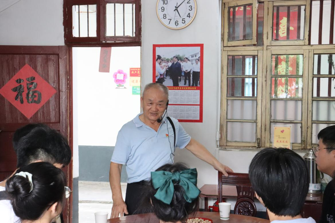 沿着习近平总书记考察路线,实践团队来到了梓山镇潭头村。在村口中心位置一座红旗形状的雕塑上面,豁然写着一行标语——“幸福都是奋斗出来的”。红军烈士后代、孙观发爷爷的家就在潭头村的入口处。2019年5月20日,习近平总书记带着对革命老区人民的牵挂,来到这里考察,同当地镇、村干部及孙观发一家围坐在一起拉家常。孙观发介绍,他在村里经营起“饮水思源”餐馆和超市,并将自家种的绿色蔬菜和养殖的土鸡、土鸭摆上桌,颇受游客们喜爱。除去用来直接招待游客,潭头村还开设网店,通过网络将绿色蔬菜和土鸡土鸭销往全国各地。2021年,孙观发一家的收入达到近20万元。曾经“梓山潭头,吃苦两头”,现在潭头村已经成为远近闻名的“三产融合”示范村