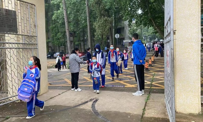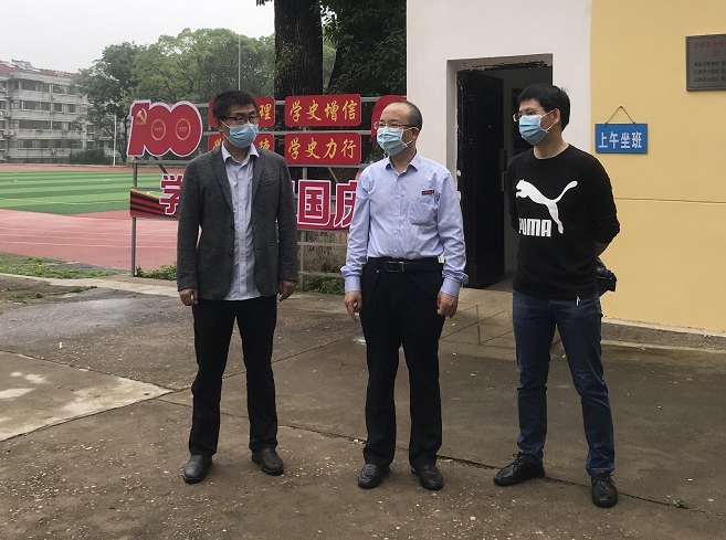 5月23日清晨,副校长曾志将来到附属中学,指导师生复学工作。