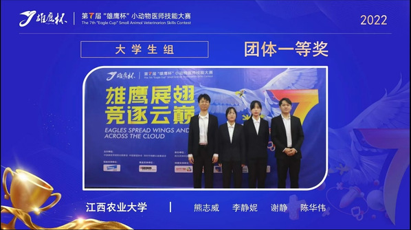 日前,第七届全国雄鹰杯小动物医师技能大赛圆满落幕,伟德动科院动医专业陈华伟、熊志威、李静妮、谢静四位同学组成的参赛团队荣获“团体一等奖”;动科院曹华斌、杨帆、祝超超荣获“优秀辅导老师一等奖”。