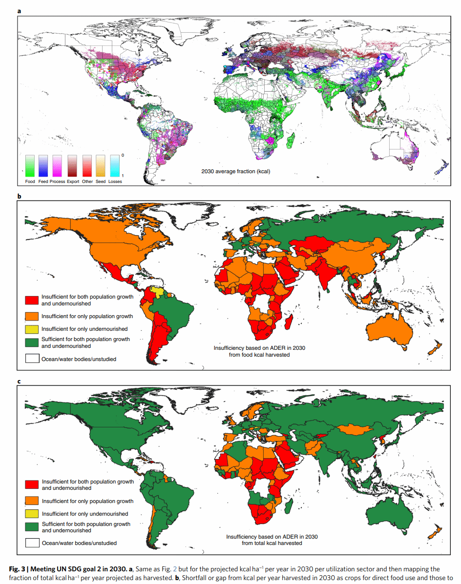 该研究进一步明确,到2030年,至少有31个国家可能无法满足自身粮食需求,即使国内所有收获的卡路里都被用于直接食品消费。另外17个国家将无法在同一时间范围内满足其预期人口增长的粮食需求,这可能会加剧其营养不良人口的粮食不安全负担。