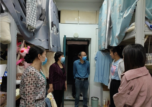 调研最后,乔金霞深入宿舍与学生亲切交谈。她一一询问同学们的近况,勉励同学们要模范遵守疫情防控管理期间学校各项规定,以严谨的态度对待学业,合理开展体育锻炼,保持与家人、老师和同学之间的良好沟通交流,以积极阳光的心态度过这段特殊时期。在毕业班,她鼓励同学们要认真吸收学院老师就业指导建议,树立正确的就业观和择业观,积极寻找出路,走好人生道路。她叮嘱学院一定要关心关爱学生,把学生当成自己孩子,切实解决好学生遇见的困难和问题,真正为他们提供贴心服务,确保学生身心健康、校园秩序良好。