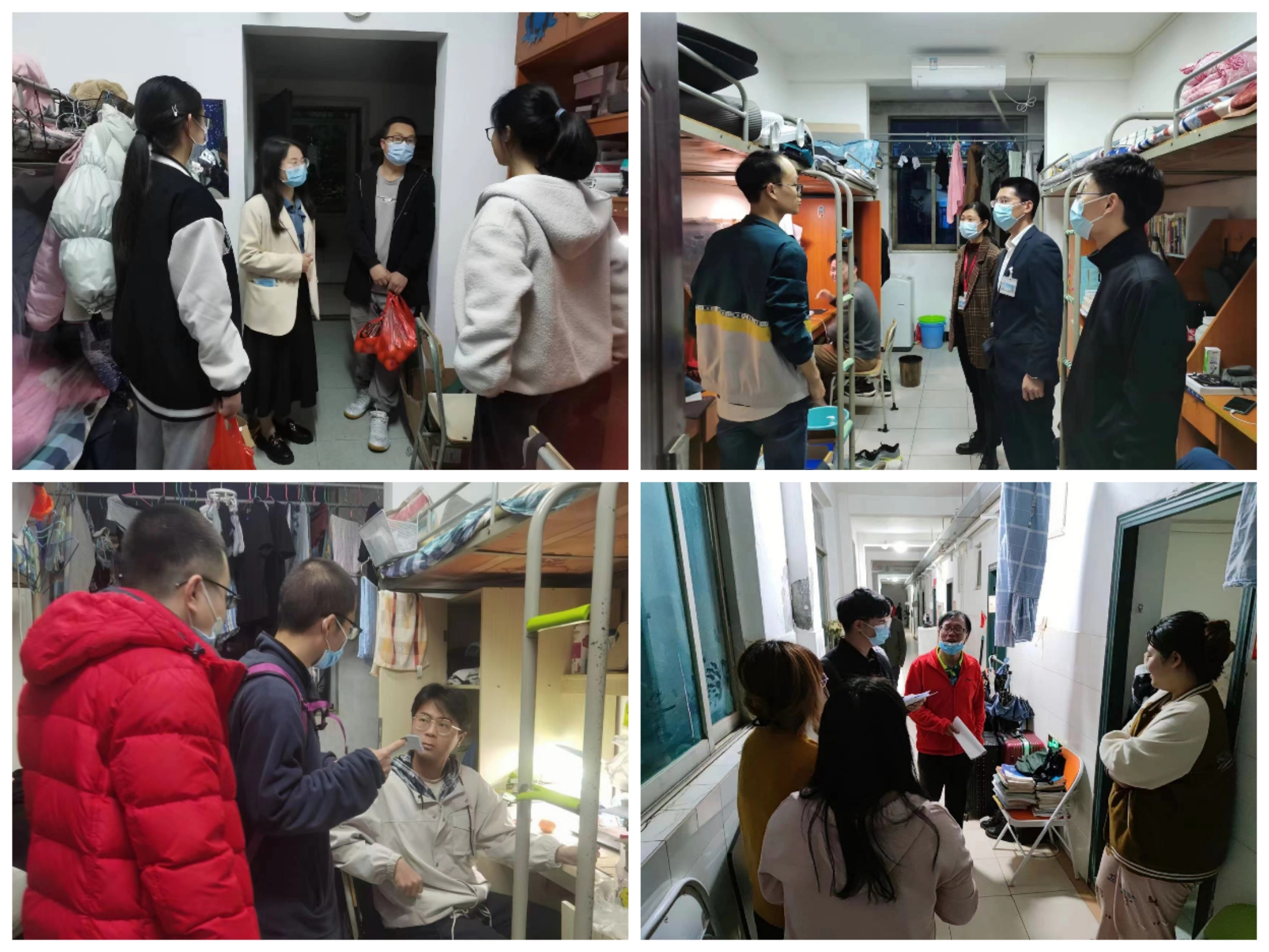 “目前生活上有没有什么困难?”“线上学习效果怎么样?”“就业落实的怎么样?有没有积极参加线上的招聘?”每走进一间宿舍,老师们与同学都进行了亲切与深入的交流,详细询问了他们目前在学习、生活、考研、就业等方面的情况,要求同学们做好常态化疫情防控,遵守学校疫情防控要求,提高疫情防控意识。针对低年级学生重点叮嘱学生做好时间管理、加强基础科目的学习,注重身体锻炼;对毕业年级学生则重点引导他们做好职业规划、树立就业信心,积极参加各类线上招聘活动,站好毕业离校最后“一班岗”。