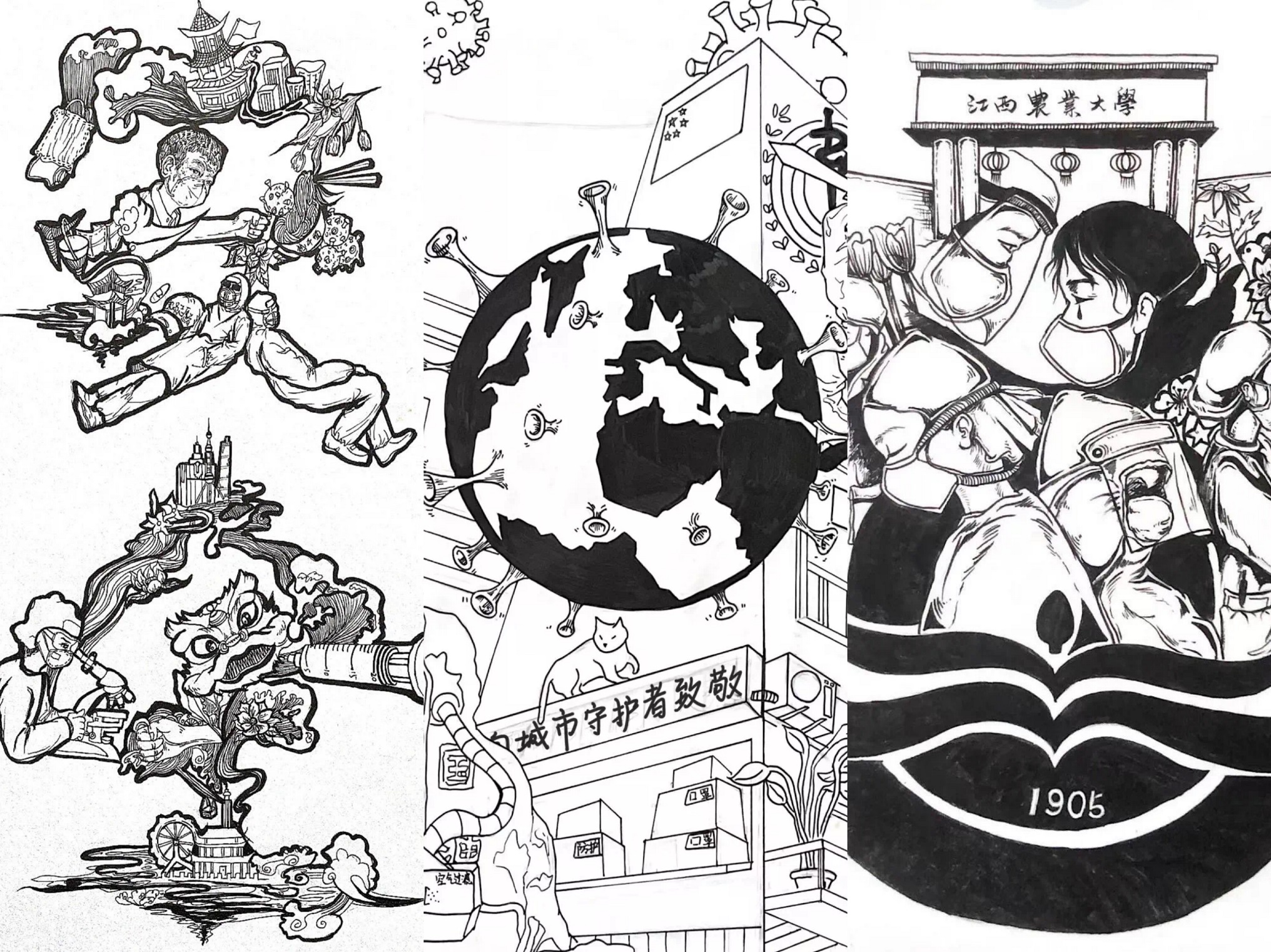 以艺战疫,传递青春正能量。人文与公共管理学院、化学与材料学院的学生在学院辅导员老师的指导下,利用线上云合唱的形式演唱《明天会更好》《我和我的祖国》等歌曲,深情点赞“大白”“志愿红”。生物科学与工程学院辅导员罗强凭借个人专业特长原创歌曲《最可爱的人》,致敬战疫中的平凡英雄。职业师范学院举办“镌刻江农,春暖花开”木刻版画活动,鼓励学生用木刻艺术语言图示江农青年的理想信念。数字媒体艺术专业21级本科生付弘轩作说道“疫情当下,许许多多的人挺身而出守护这城市。我深切感觉手中的木刻刀带着“若有‘战’,我有责”的使命感。”
