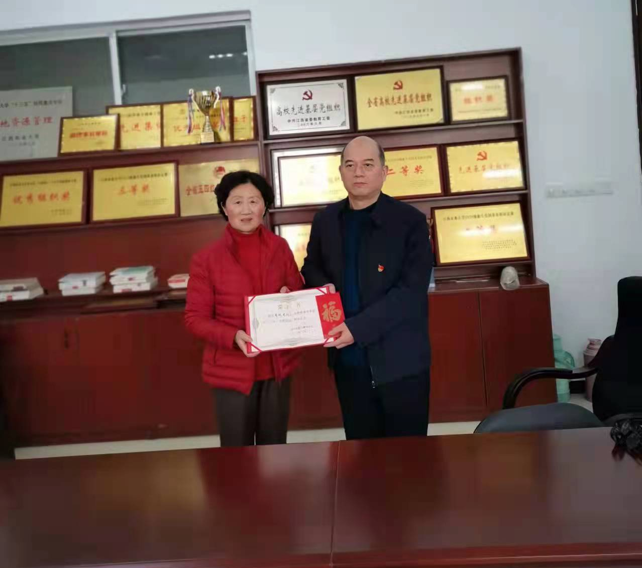 张嵚副院长向大家介绍了荣休教师周跃龙的基本情况,并代表学院向她表达了深情的感谢和真挚的祝福,李保同书记代表学院颁发了光荣退休荣誉证书及慰问金,并代表学院感谢周跃龙师多年来的辛勤付出,期待她一如既往地关心和支持学院发展。
