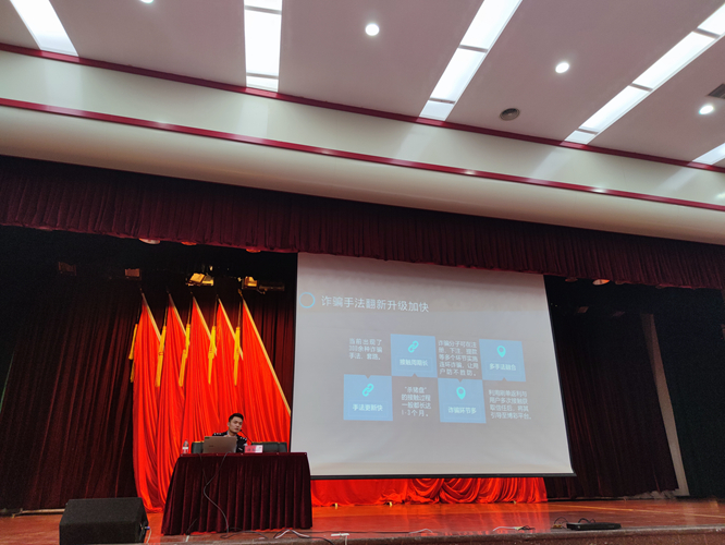 为提高师生防范电信网络诈骗的意识和能力,2月28日晚,学校联合南昌市公安局在逸夫报告厅开展 “反电诈开学第一课”主题宣讲会,会议邀请了南昌市公安局电信网络诈骗侦查支队党委委员、纪委书记、政工监督室主任陈思静现场指导,反诈民警徐加明和南昌大学大学生反诈志愿者作报告。会议由保卫处处长万江文主持,学校各单位综治干部、辅导员、大学生及研究生共计500余人参加。