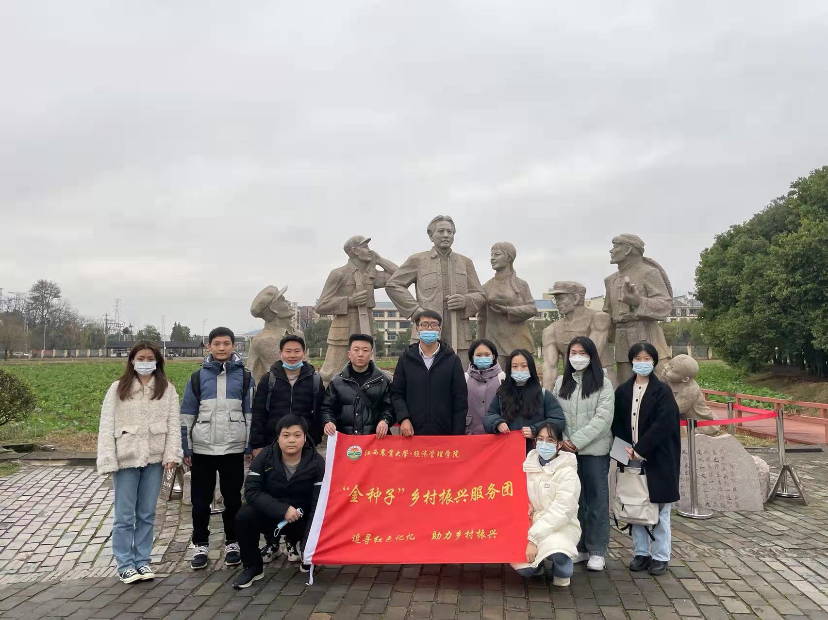 落实立德树人任务,精心培育“金种子”。人才是第一资源,乡村要振兴,人才是关键。学院锚定培育“一懂两爱”新时代农经人才,注重发挥社会实践的育人功能,在调研中主动融入课程思政元素,注入红色新动能,旨在为乡村振兴战略的全面实施培育更多的根正苗红的“金种子”。在红色故都瑞金,“金种子”乡村振兴服务团走进沙洲坝,参观红井,饮水思源,追寻红色印记,传承红色基因,助力乡村振兴;在彭蠡之滨彭泽,“金点子”乡村振兴服务团前往兆吉沟红色教育基地,参观中共赣皖七县中心县委旧址,重温入党誓词,聆听党史故事,厚植家国情怀,感悟信仰力量,坚定理想信念,增强使命担当。