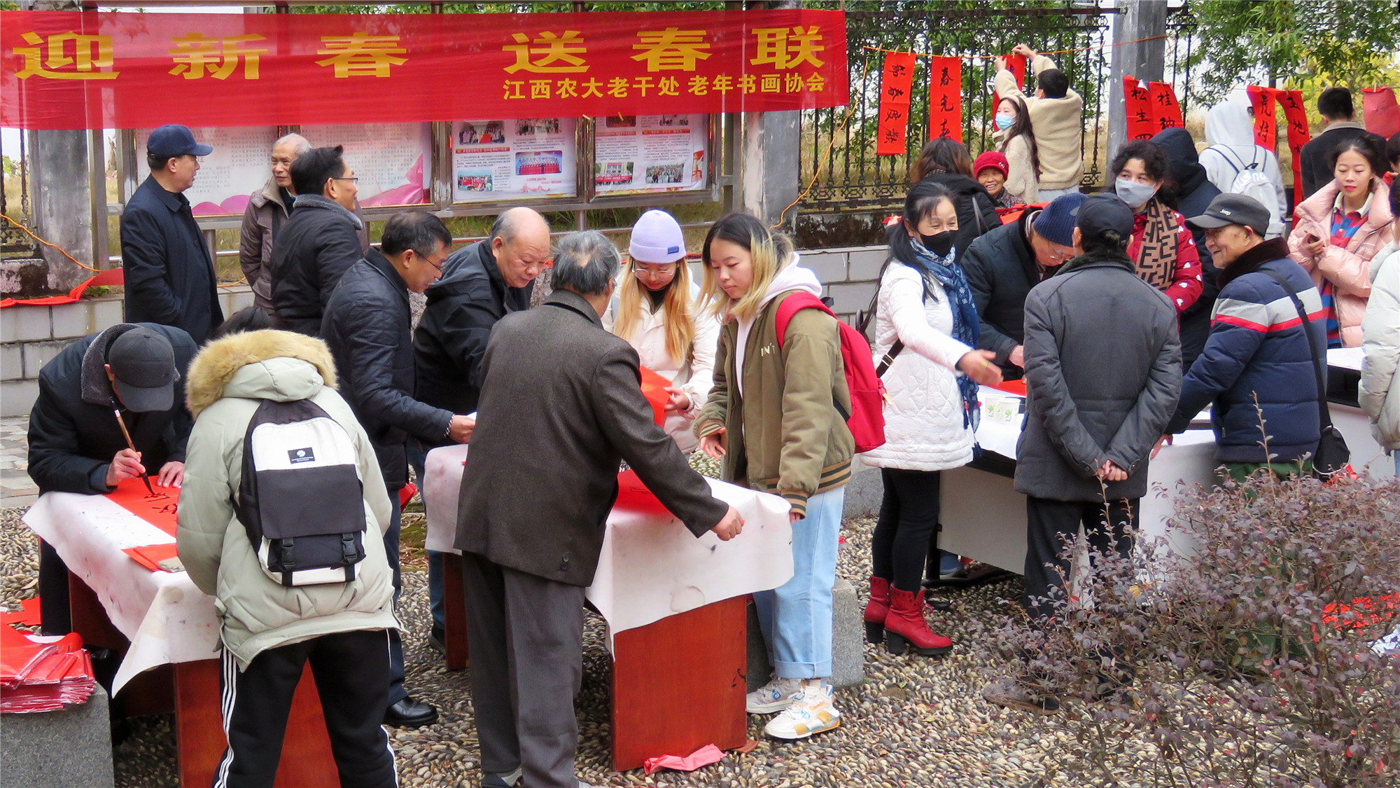 寒冬送温暖,墨香暖人心。为弘扬中华民族优秀传统文化,1月6日上午,离退休工作处联合老年书画协会共同举办了“迎新春,送春联”活动,向全校师生赠送亲笔书写的春联,活动共送出春联600余幅。南昌市老年书画协会何友德会长一行五人应邀参加了此次活动。