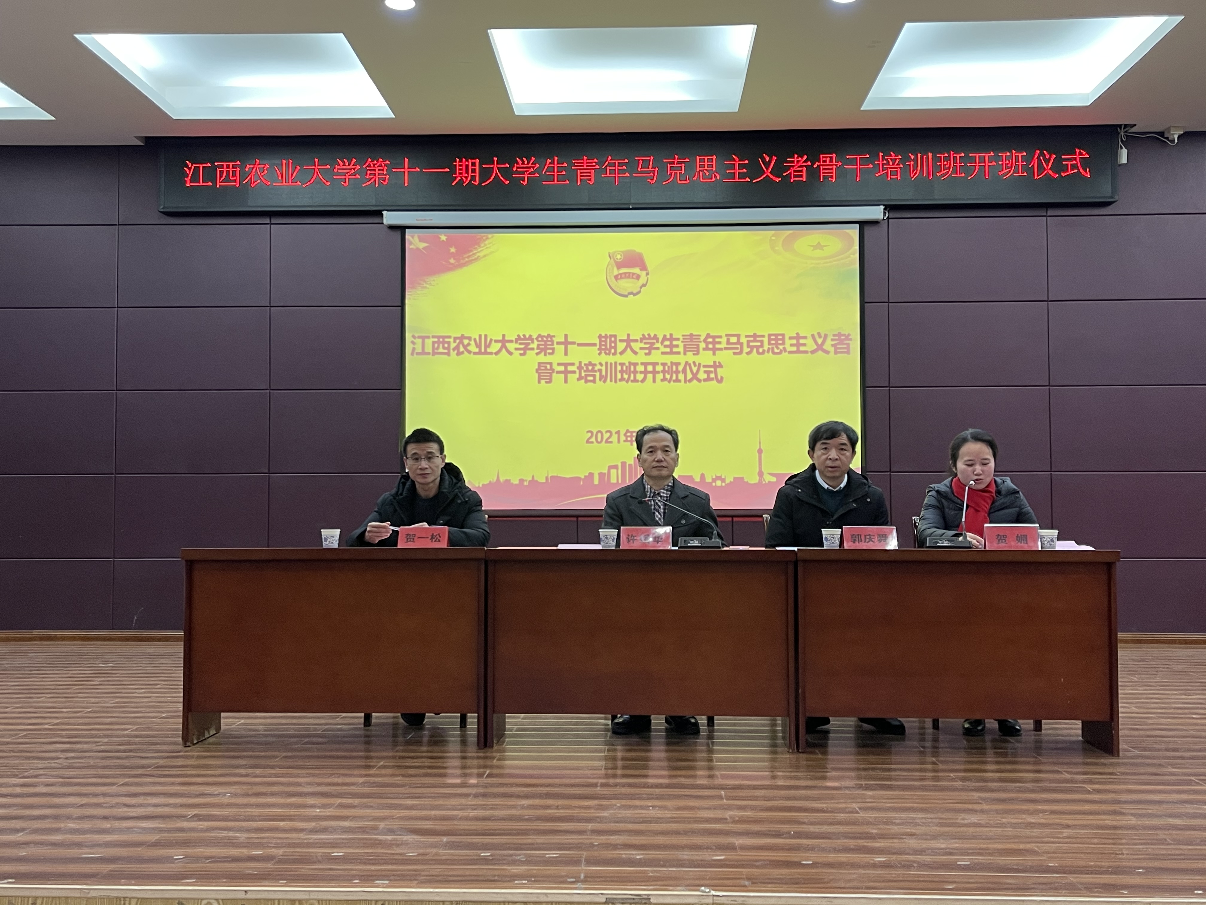 12月28日晚,伟德第十一期大学生青年马克思主义者骨干培训班开班仪式在大学生活动中心501报告厅举行。校党委委员、副校长许斌华出席仪式并授旗讲话,校党委组织部、宣传部、校团委负责同志,各学院团委书记和第十一期大骨班全体学员共计200余人参加了仪式。