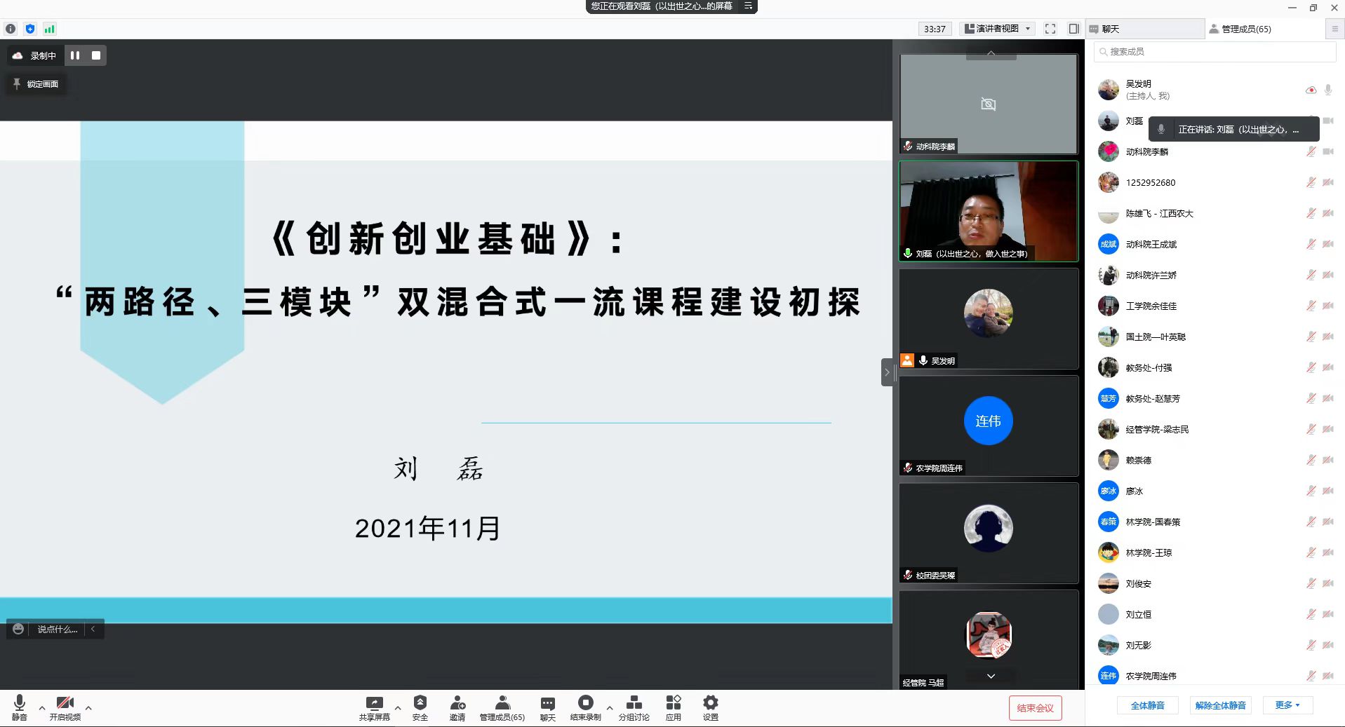 本次培训通过专题辅导、在线讨论、总结交流等方式进行了全面、系统、专业的培训和考核。江西理工大学创新创业与区域产业协同发展研究中心刘磊主任以“创新创业基础-两路径、三模块双混合式一流本科课程建设初探”为主题作专题辅导,江西财经大学国际经贸学院何望副研究员就“社会实践一流本科课程建设”、“大学生创新创业训练计划项目”、“大学生创新创业竞赛”等方面的工作经验进行了交流与探讨。