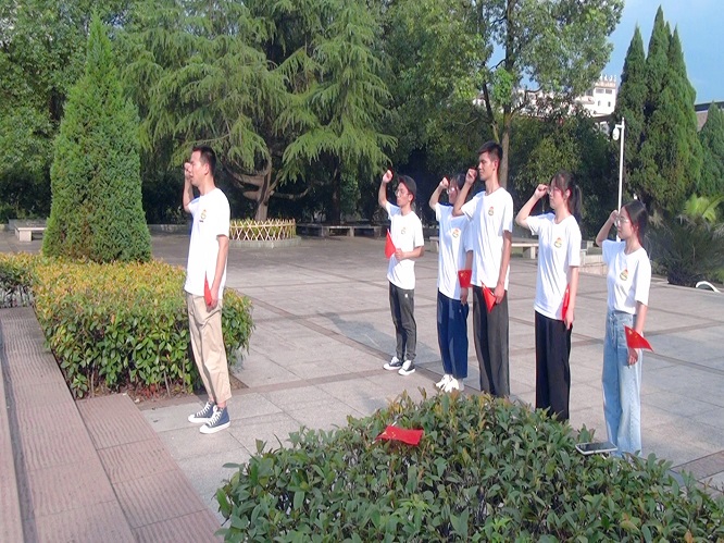加强党性修养,赓续使命担当。正值建党百年,为深切缅怀革命先烈,厚植调研团队的爱党爱国情怀,社会实践队成员在湖塘村党支部书记方界平的带领下前往中共弋阳县漆工镇党校进行参观学习。走在前辈们走过的路上,老师和调研队员们由衷地赞叹烈士故里浓厚的红色文化氛围,两旁道路红旗招展,环境清幽。在漆工镇党校,通过讲解员的讲解和现场观摩,队员们深刻感受到了党校红色文化氛围和湖塘村厚重的红色文化底蕴。队员们更加坚定了加强党性修养的决心,纷纷表示要积极向党组织靠拢,强化使命担当。